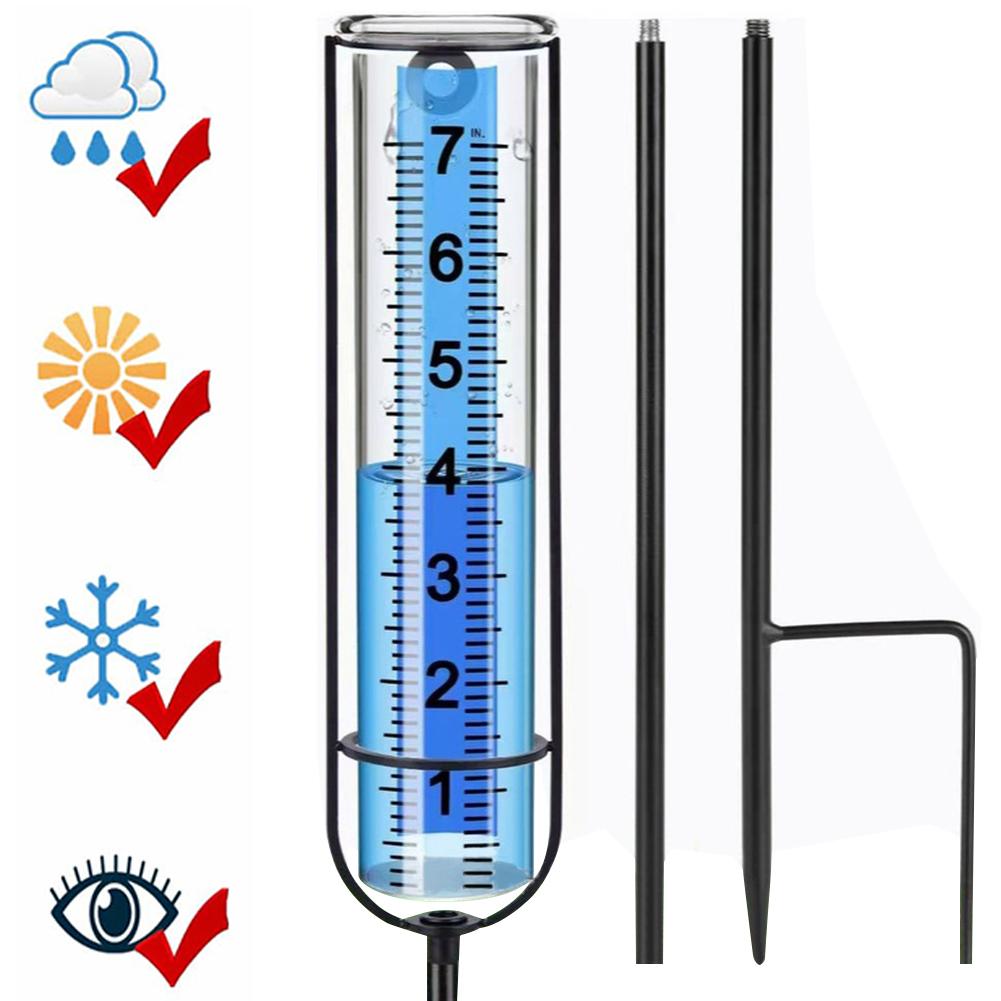 Outdoor Rain Gauge with Stake Water Rain Meter Adjustable Height Transparent Rain Gauge Large Numbers for Garden Lawn Yard