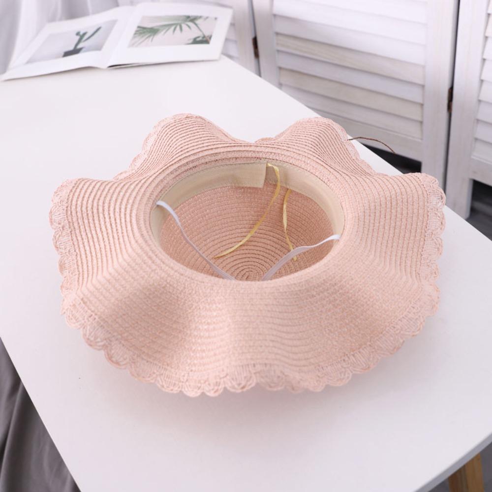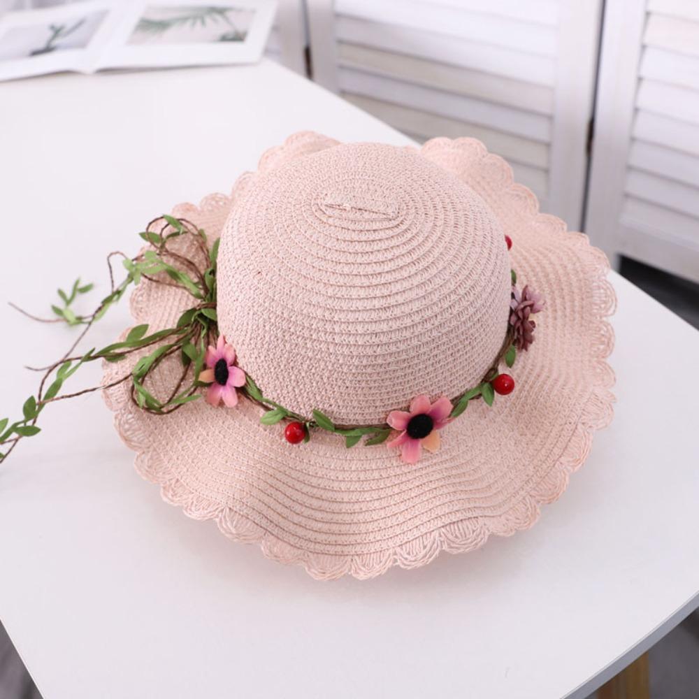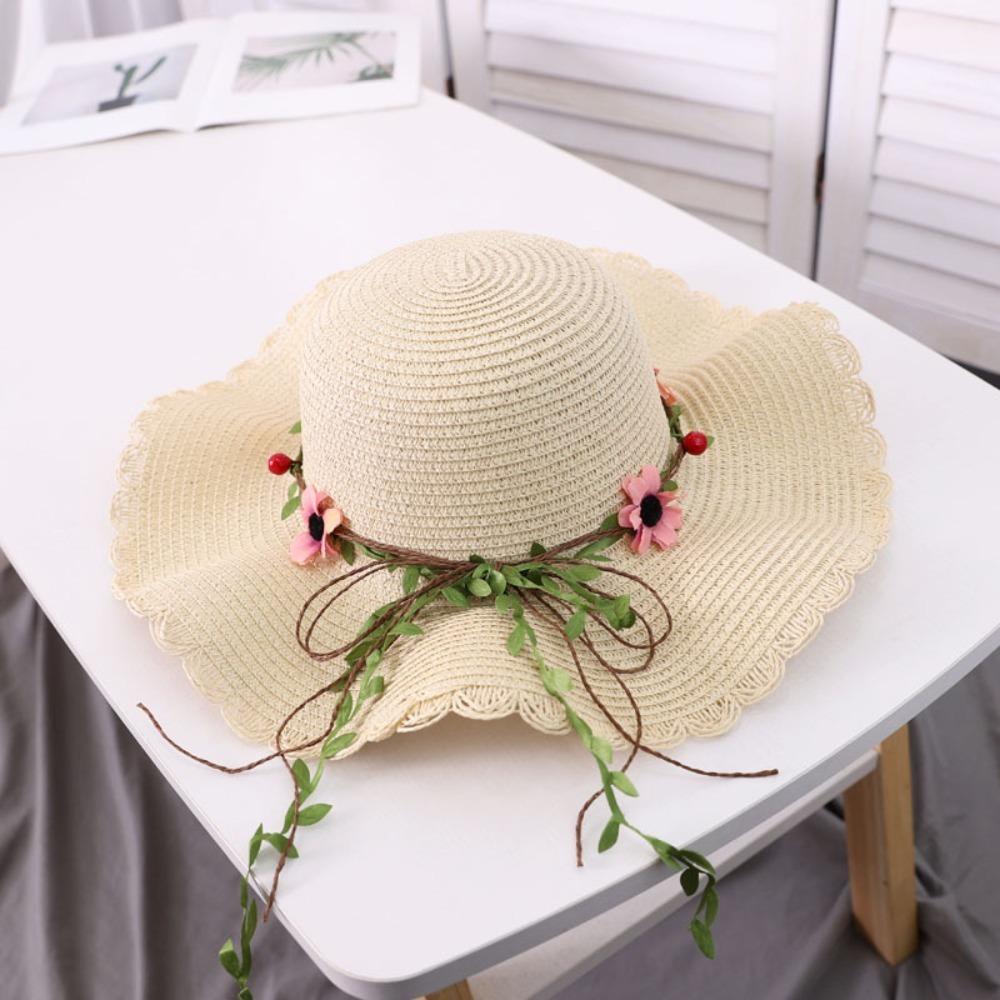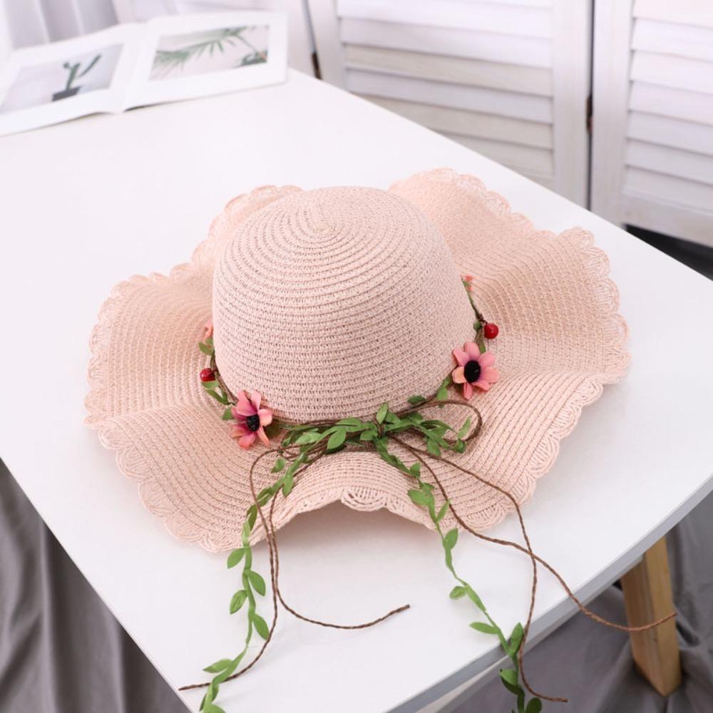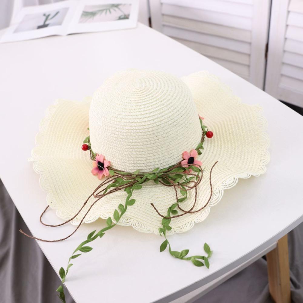 Wide Brim Beachside Sun Hat Fishing Cap Summer Beach Hat Portable Flower Lafite Straw Hat Outdoor