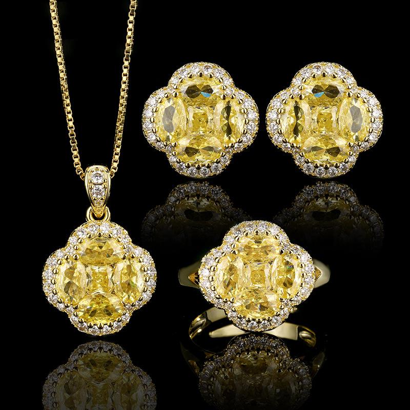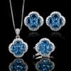 2025 Инкрустированный Алмазами Набор Ювелирных Изделий Кольцо Серьги Синий Острый Хрусталь Ожерелье Мода Роскошь Клевер Женские Аксессуары