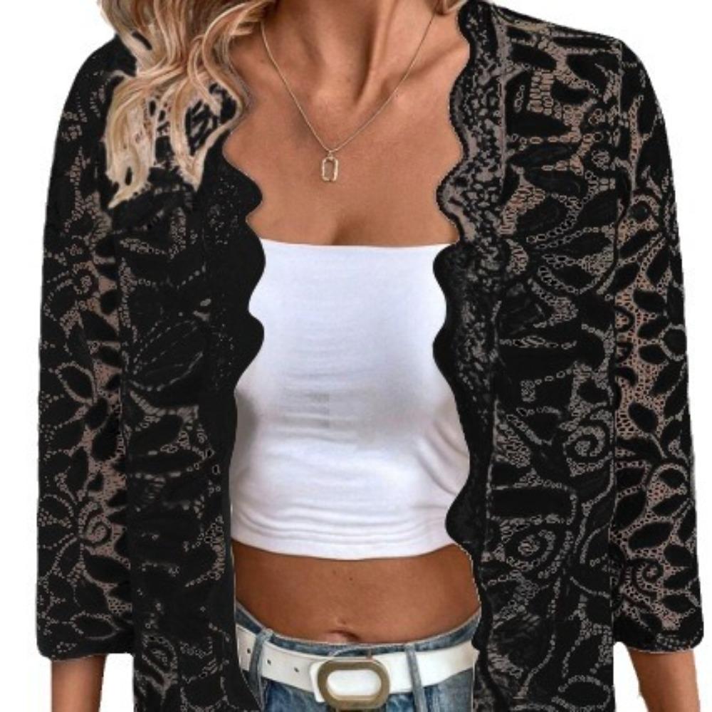 Красота Мода Рукав Три Четверти Узор Полый Кружева Однотонный Кардиган — купить товар онлайн с бесплатной доставкой по всему миру!