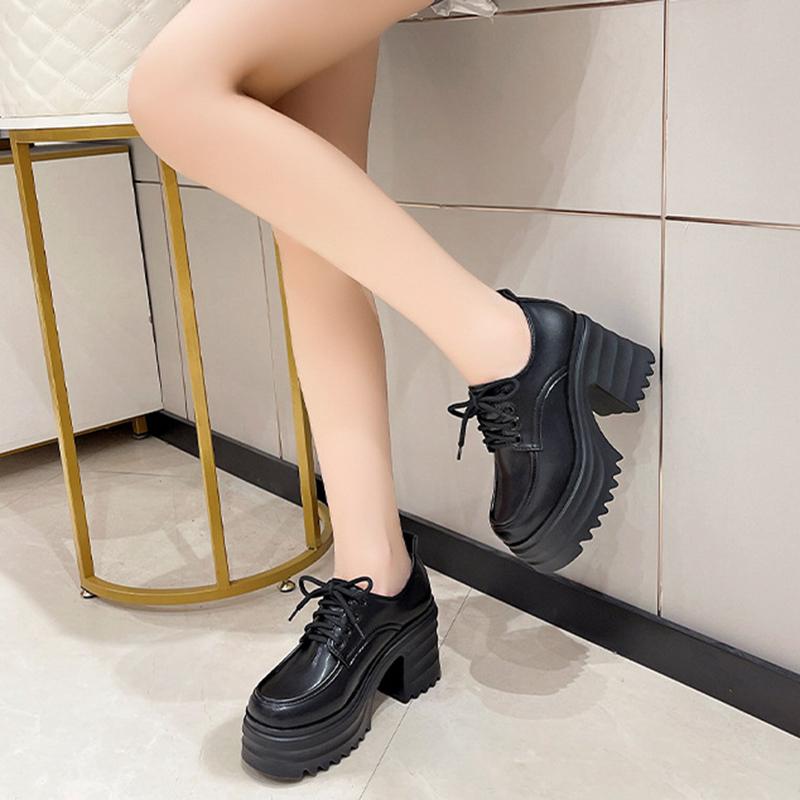 Туфли-лодочки из искусственной кожи для женщин на платформе, квадратном каблуке, на шнуровке, для женщин, для вечеринок, ролевых игр, в униформе, на высоком каблуке