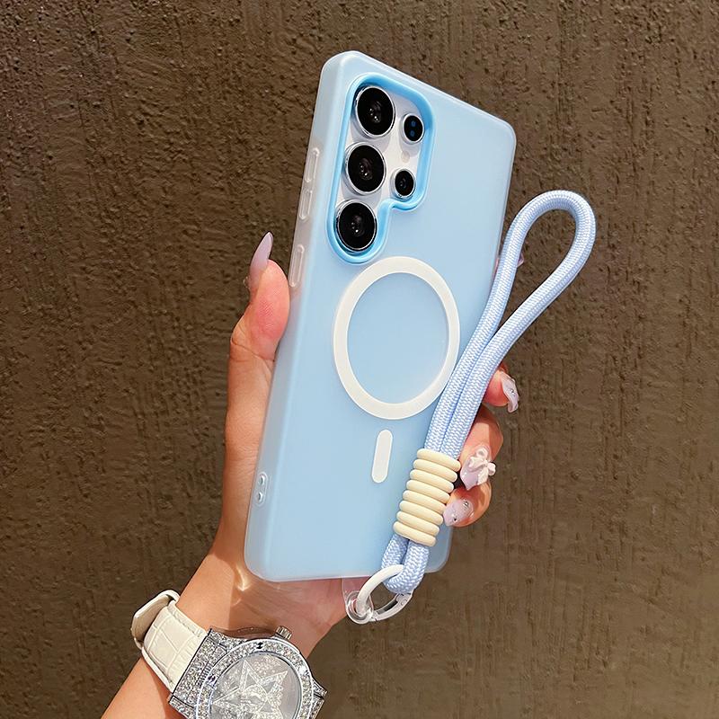 Матовый чехол конфетного цвета для Magsafe для Samsung Galaxy S25 S24 S23 S22 Ultra Plus S25Edge S25FE S24FE A17 с ремешком, мягкая накладка