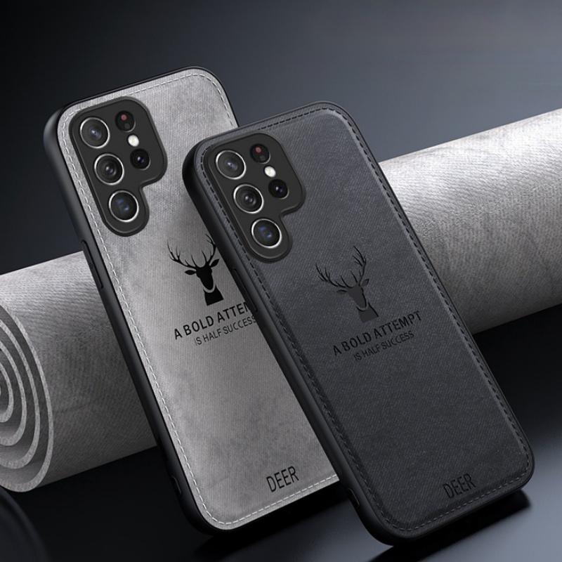 Роскошный чехол из ткани и кожи с головой оленя для Samsung S25 S24 S23 FE S22 S21 A55 A54 A53 A25 A15 A16 A36 Note 20 10 9 Plus Ultra