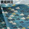 Ткань в японском стиле, чистый хлопок, с принтом, на метр, для одежды, ханьфу, скатерти, сумки, ручной работы, DIY, швейная ткань, бронзирование, синий