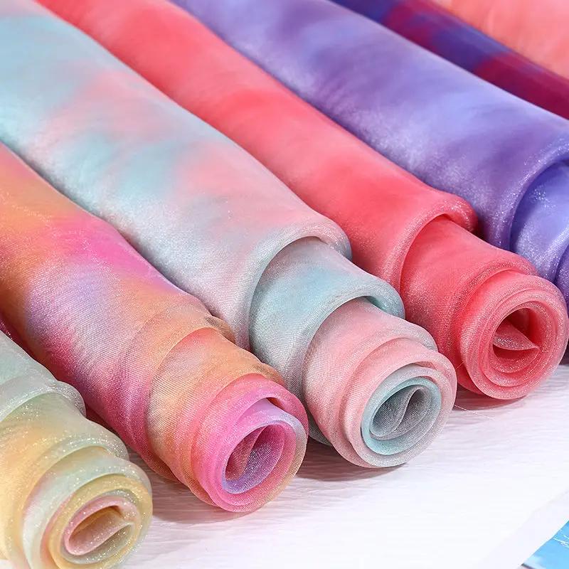 Блестящая Прозрачная Радужная Органза Ткань Градиент По Метру для Одежды Платья Свадебного Украшения DIY Шитья Дизайнерская Ткань