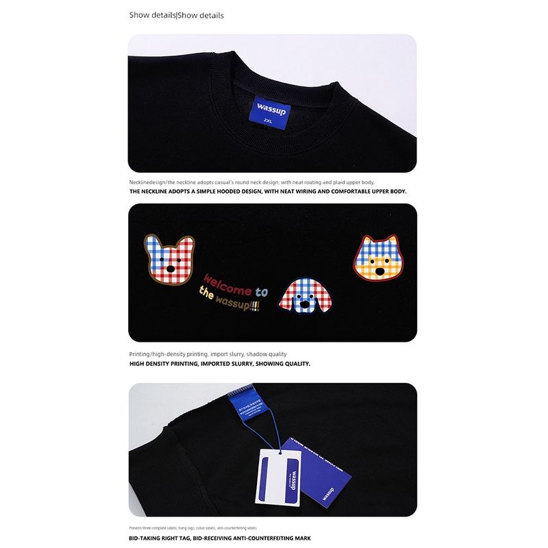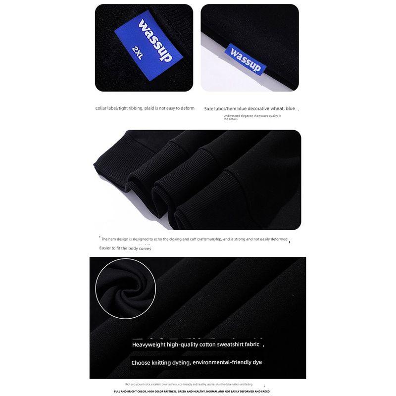 Вассап Модный простой свитшот тяжеловес в американском стиле для мужчин, флисовая подкладка для осени и зимы, свободный повседневный универсальный топ с круглым вырезом для пары