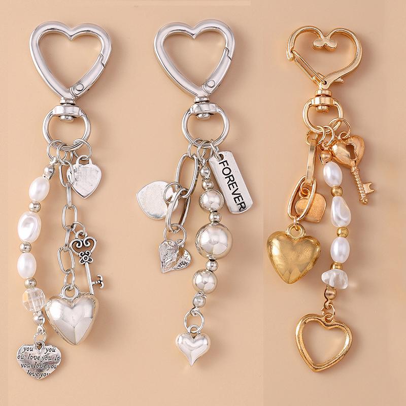 Милый металлический брелок в виде сердца любви, жемчужное кольцо для ключей для женщин, подвески для сумок для девочек, аксессуары для бижутерии ручной работы