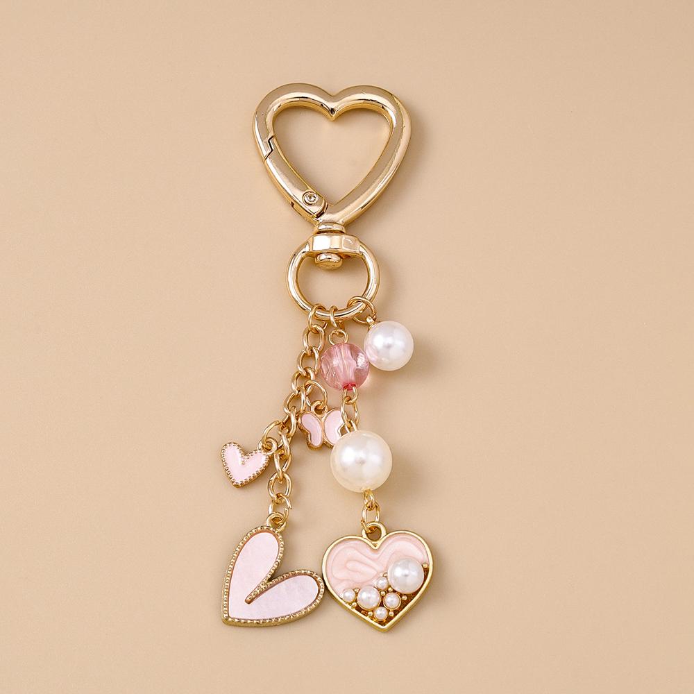 Aihua Милый розовый брелок в виде сердца любви, жемчужная бабочка, подвески-кольца для ключей в виде сердца для женщин, девочек, декор для сумок, подарок для DIY-украшений