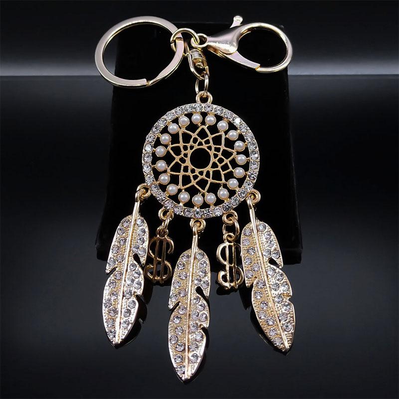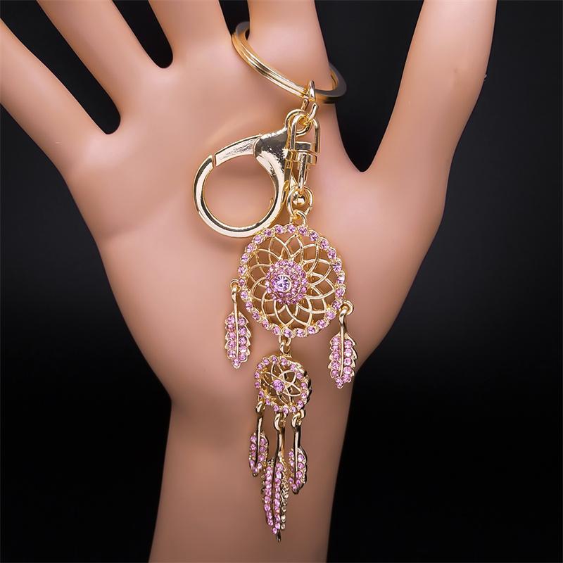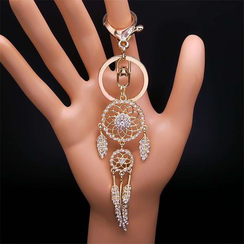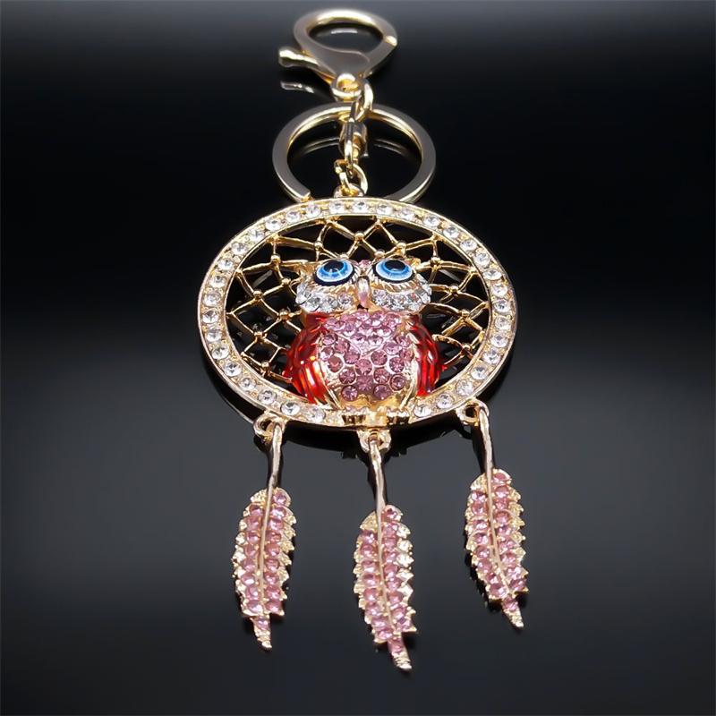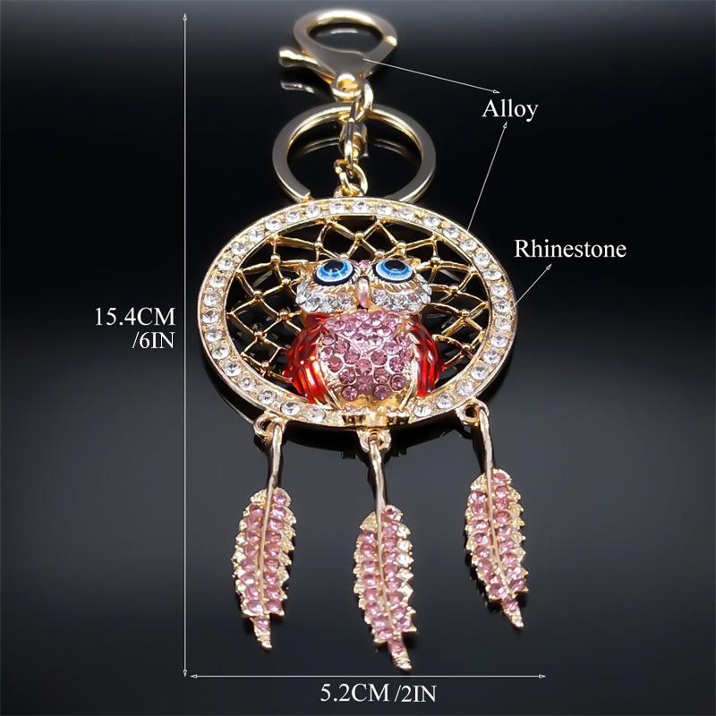 Блестящий хрустальный ловец снов с совой, перьевой брелок для женщин, сплав, стразы, ловец снов, животное, кольцо для ключей, украшение для сумки K9034S05