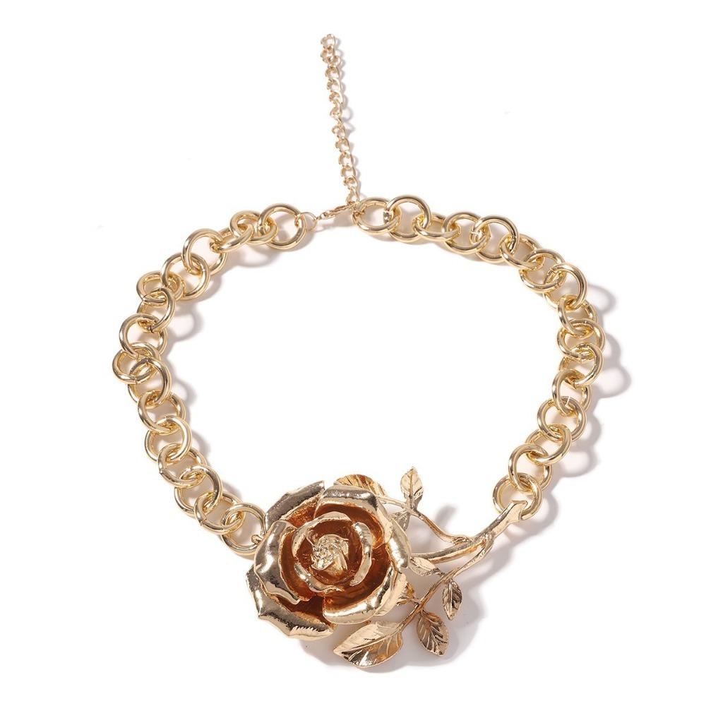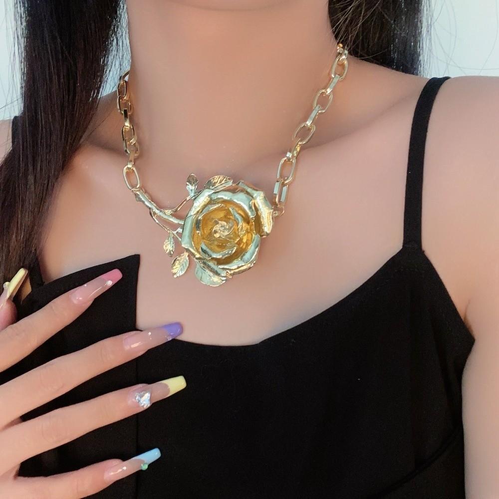 Big Exaggerated Flower Necklace Coarse Neck Chain Wedding Metal Rose Necklace Birthday