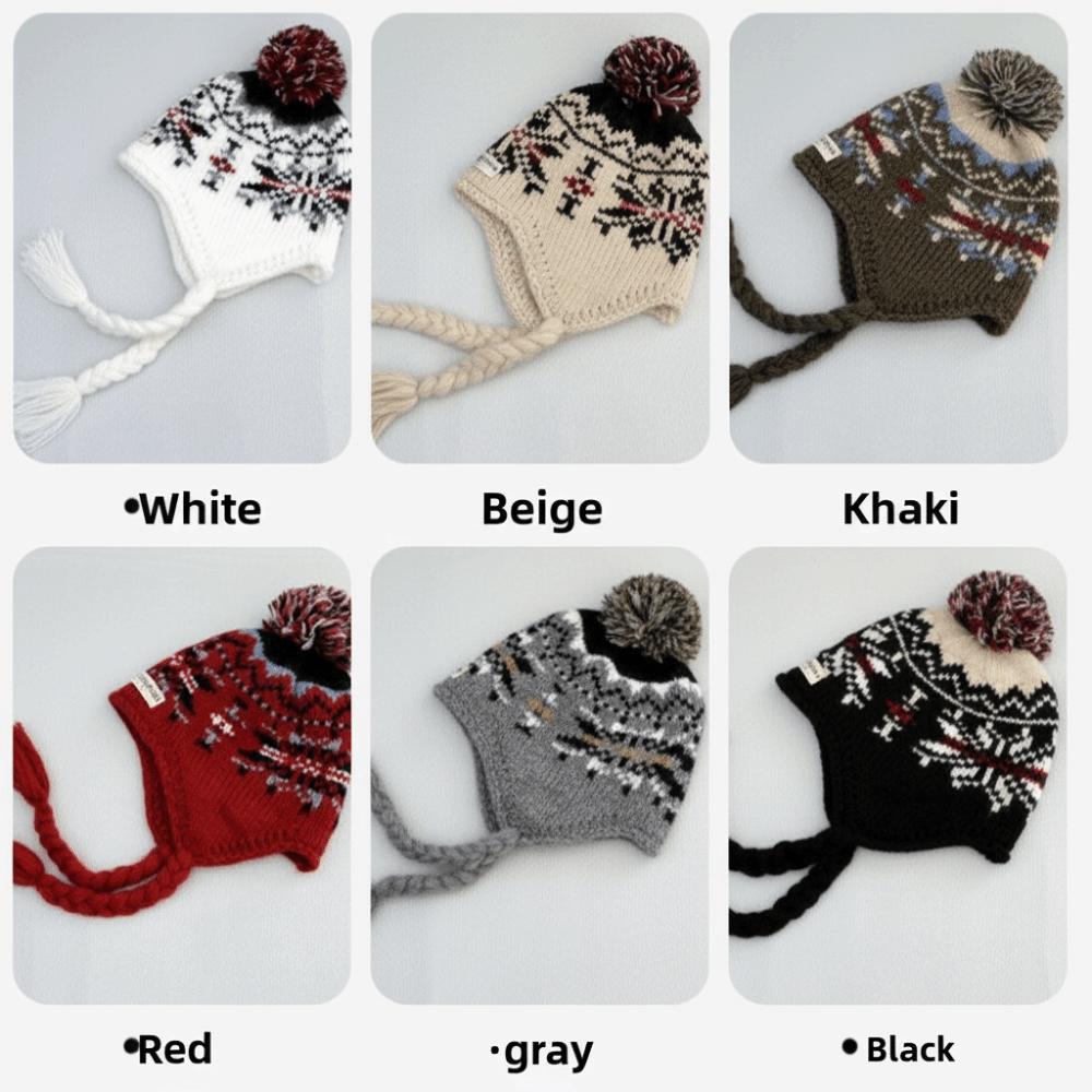 Шапка для защиты ушей в стиле Y2k, жаккардовая, женская, шерстяная, милая вязаная шапка-бини, осенне-зимняя