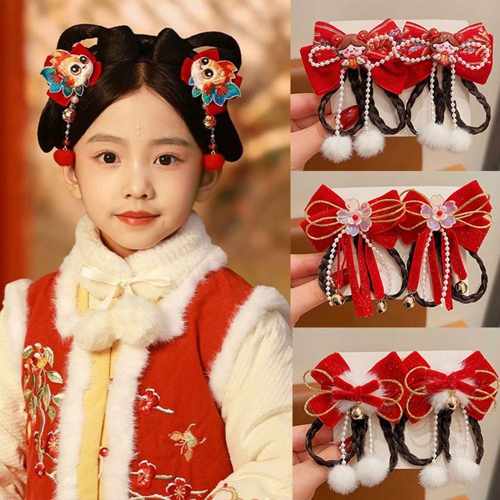 Красная детская новогодняя заколка для волос в старинном стиле для девочек в стиле ханьфу, новогодние заколки-банты для детей