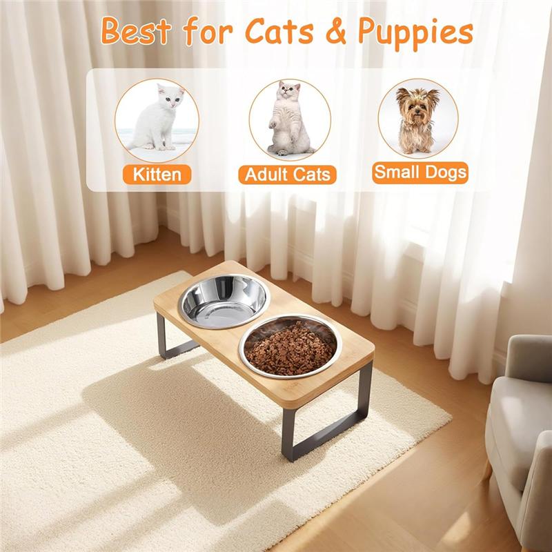 Stainless Steel Non-Slip Elevated Cat Bowls, 32 Oz Raised Pet Food Bowl Feeder With 15 Degree Tilt Dish