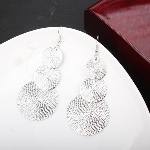 Women Fashion Exaggerated Three Layers Round Pendant Dangle Hook Earrings KTJ