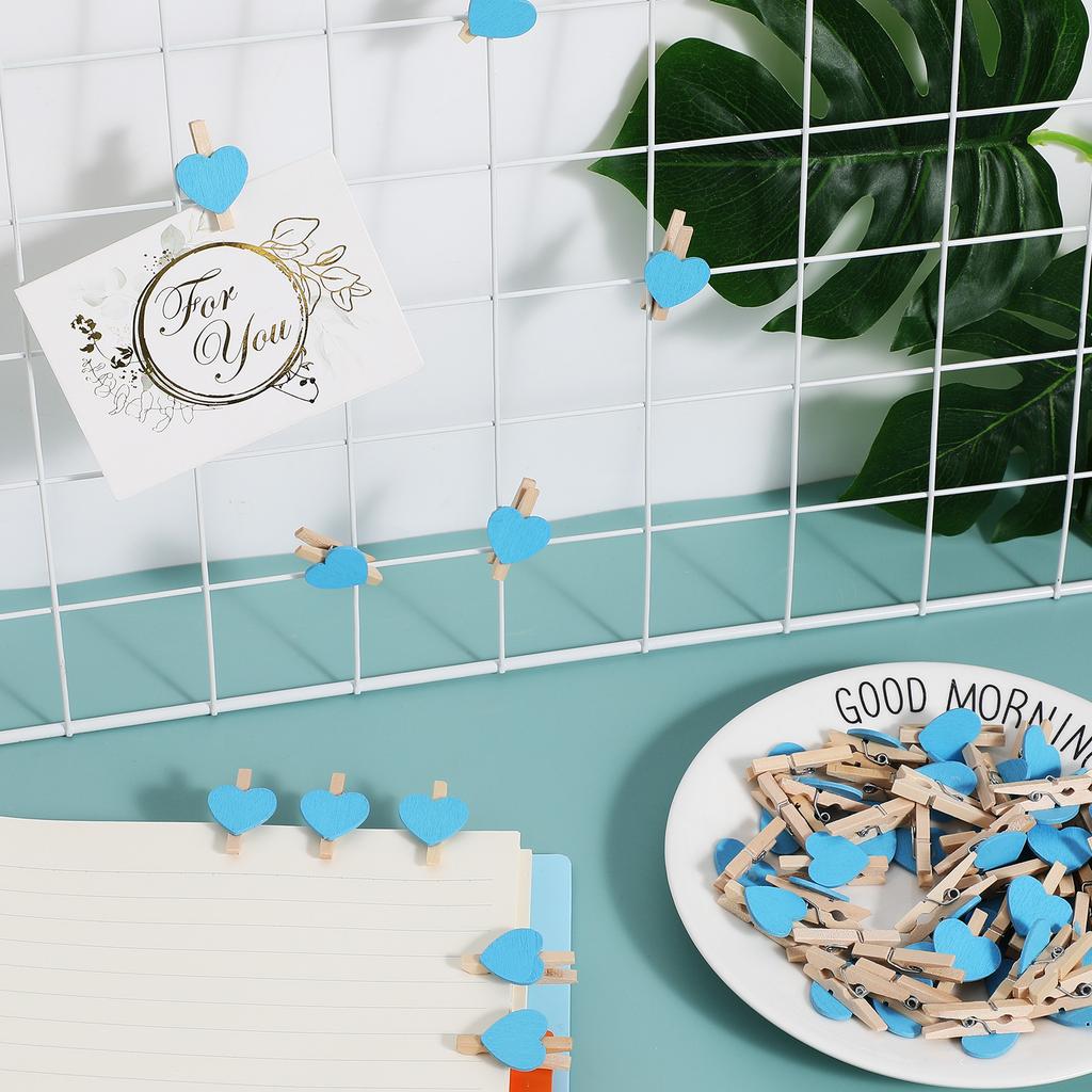 50Pcs Small Love Wooden Clips Photo Fixation Clips for Pictures Painting Crafts Memo Decoration Home Store Use