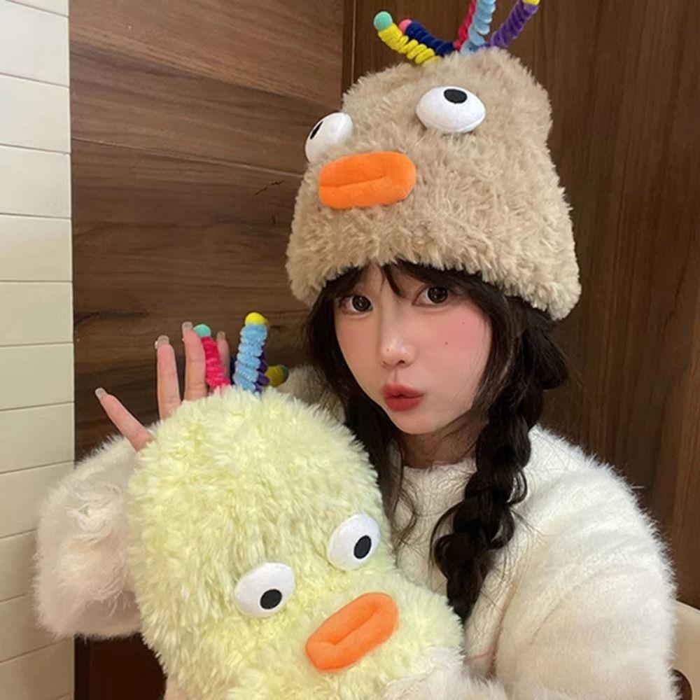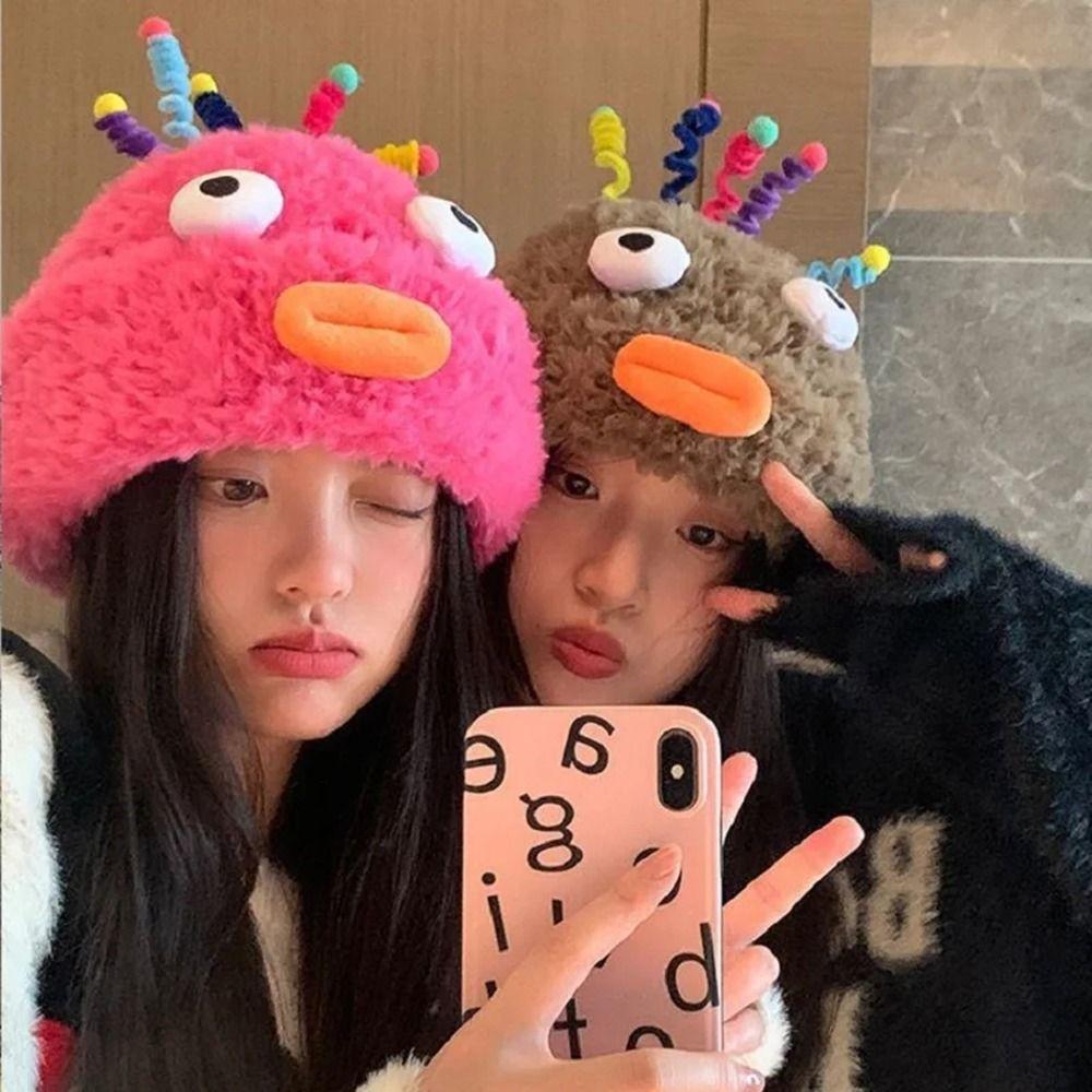 Мультяжная шапка Y2k с большими глазами, теплая зимняя уличная шапка, универсальная забавная плюшевая шапка-бини для вечеринки