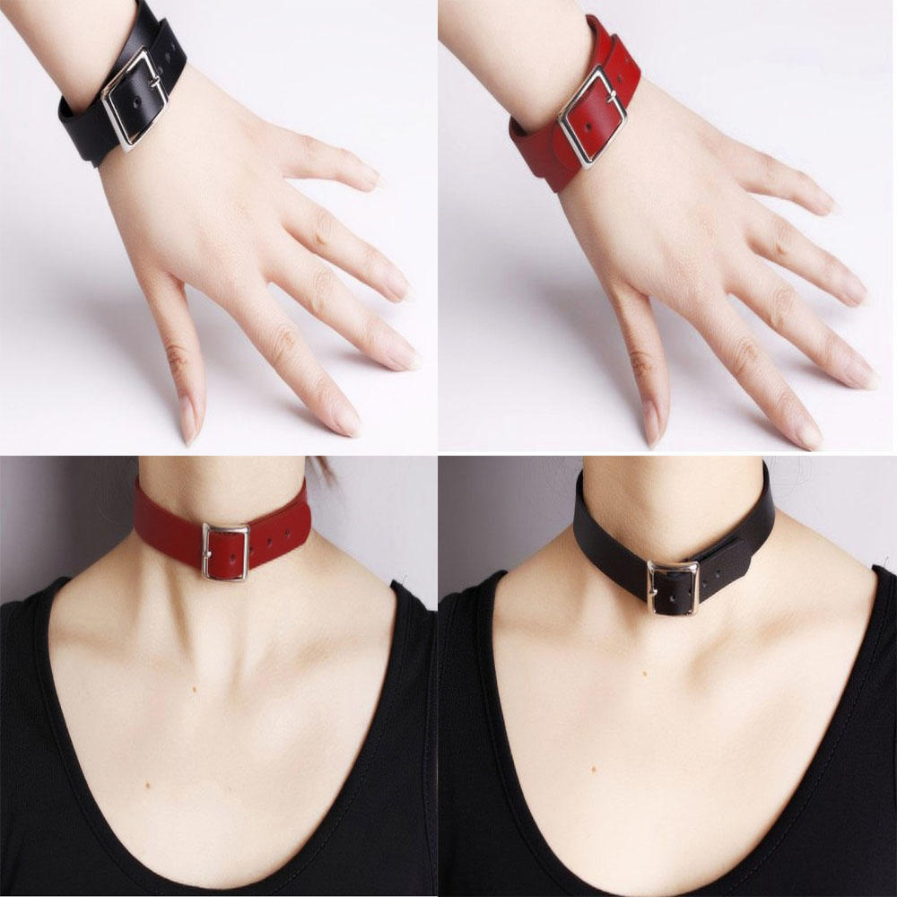 Цепь Готический Ошейник Браслет Ожерелье Кожаная Пряжка Чокер KTJ