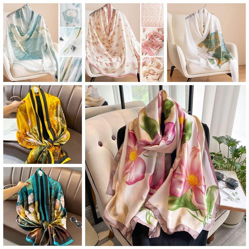 Шелковый шарф с узором «Лотос» Роскошный женский хиджаб Платки Головной платок Шифоновый шарф-накидка Весна