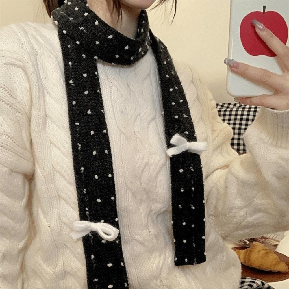 Polka Dot Knitted Scarf Y2K Long Narrow Scarves Cool Bow Wool Shawl Outdoor