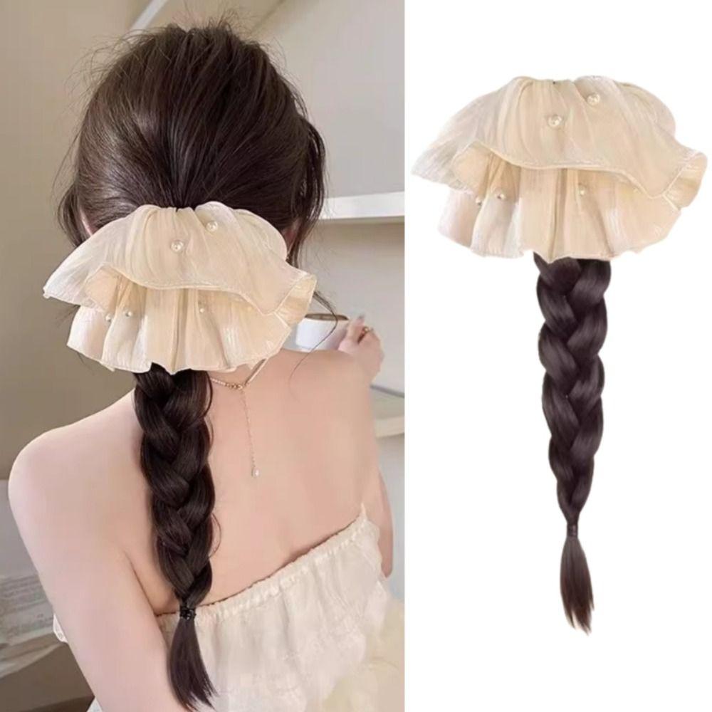 Длинный жемчуг резинка для волос толстой кишки хвостик украшение для волос твист коса парик для женщин девушек