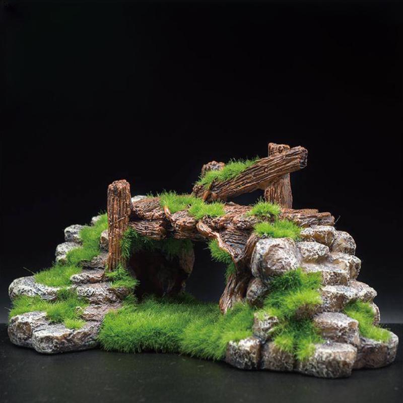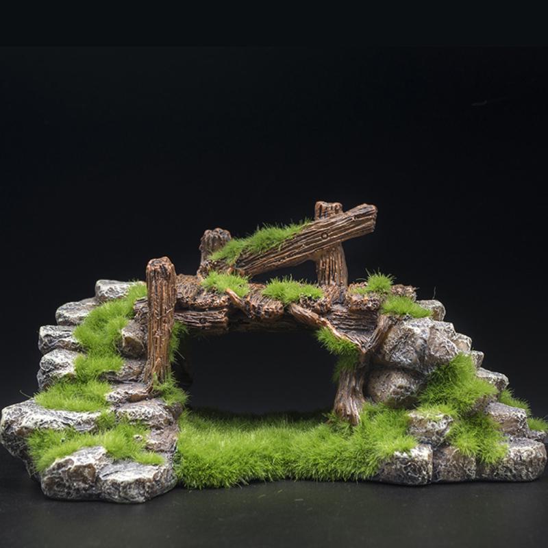 Аквариум Смола Мох Мост Пещера Рыб Черепаха Цилиндр Пейзаж Скала