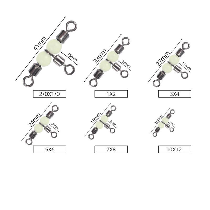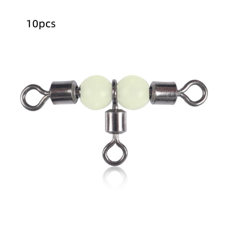 10 шт., Т-образные светящиеся тройные вертлюжки, гибкий поворотный подшипник, соединитель, рыболовные снасти