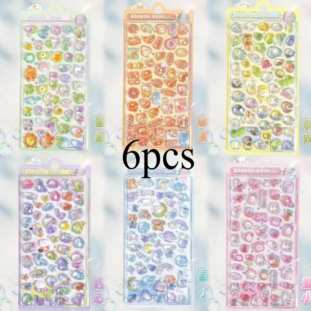 3D Тисненые Алмазные Наклейки 6 Листов Тема Мультфильмов, ПВХ Крафт Наклейки для Скрапбукинга и Украшения Канцелярских Товаров - Идеальный DIY