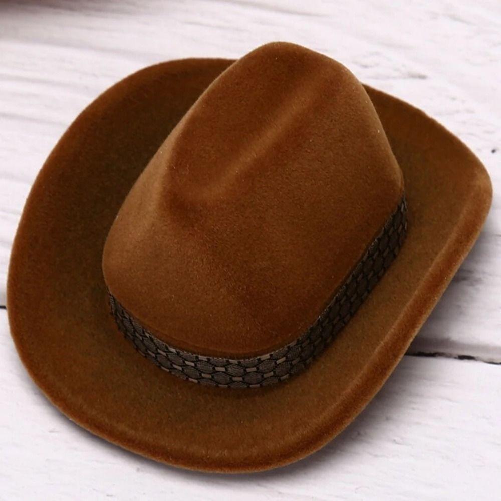 Vintage Jewelry Storage Boxes Flocked Creative Ring Box Western Cowboy Hat Ring Box Wedding