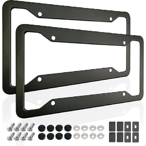 Рамка для номерного знака Черная - Матовый черный алюминиевый металлический держатель для номерного знака, Сверхпрочная рамка, прочная, коррозионностойкая, устойчивая к ржавчине, атмосферостойкая и устойчивая к выцветанию. Как новый после длительного использования. Поставляется в упаковке по 2 штуки, подходит для переднего бампера и заднего держателя номерного знака. Рама с 4 отверстиями может быть установлена надежно