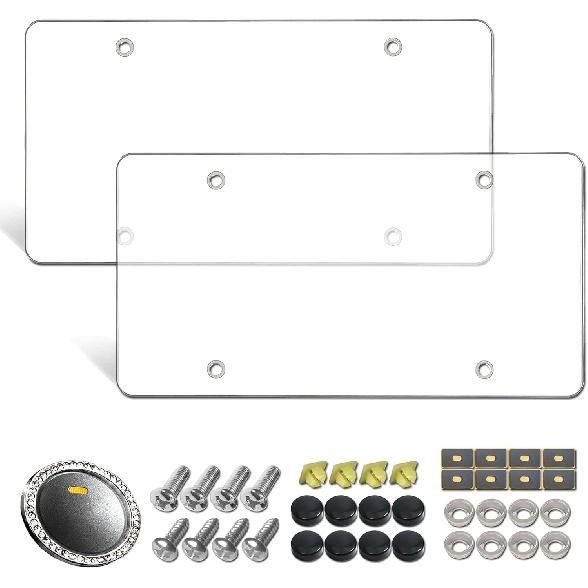 Aootf License Plate Covers- Clear Flat License Plate Protector, Unbreakable Transparent Protective Cover With Screws Caps, 2 Pack For Front Rear