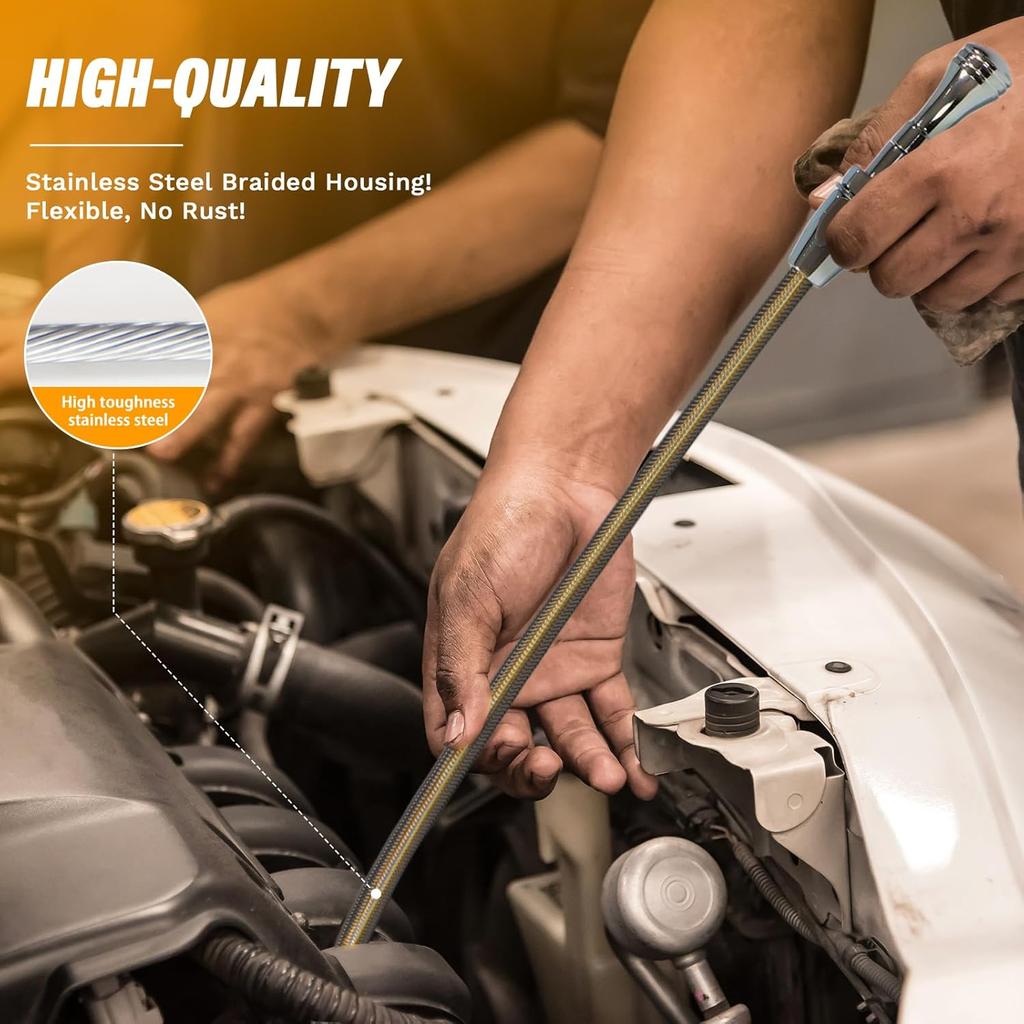 HAHAHA TH350 TH400 Turbo350 Firewall Mounted Flex Transmission Dipstick TH350/TH400 Stainless Braided Hose Compatible With GM/Chevy TH350/TH400