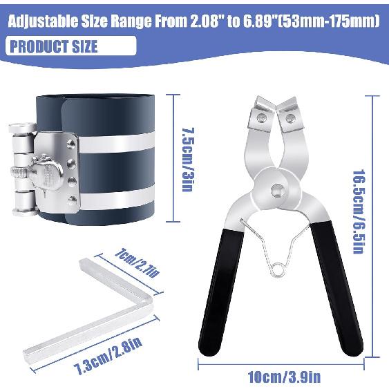 Piston Ring Compressor Taller Removal Tool For Car Engine With Piston Taller Plier, Sizes Adjustable From 2.08" To 6.89"(53Mm-175Mm)