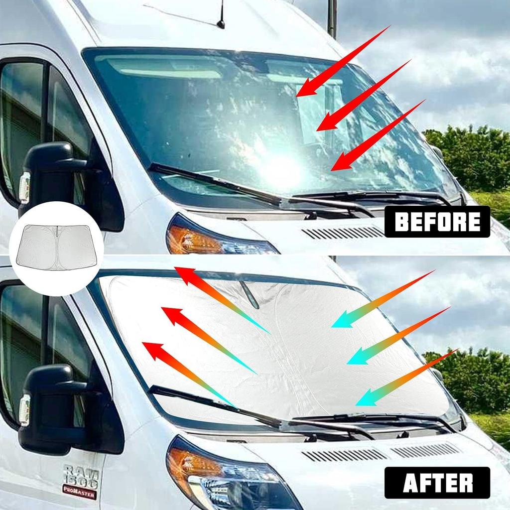 ROCCS Windshield Sunshade UV Ray Reflector for 2014-2025 Dodge RAM ProMaster Full Size Cargo Van Chassis Cab Cutaway Front Window Sun Shade Shield