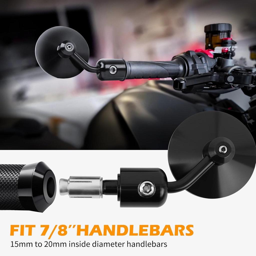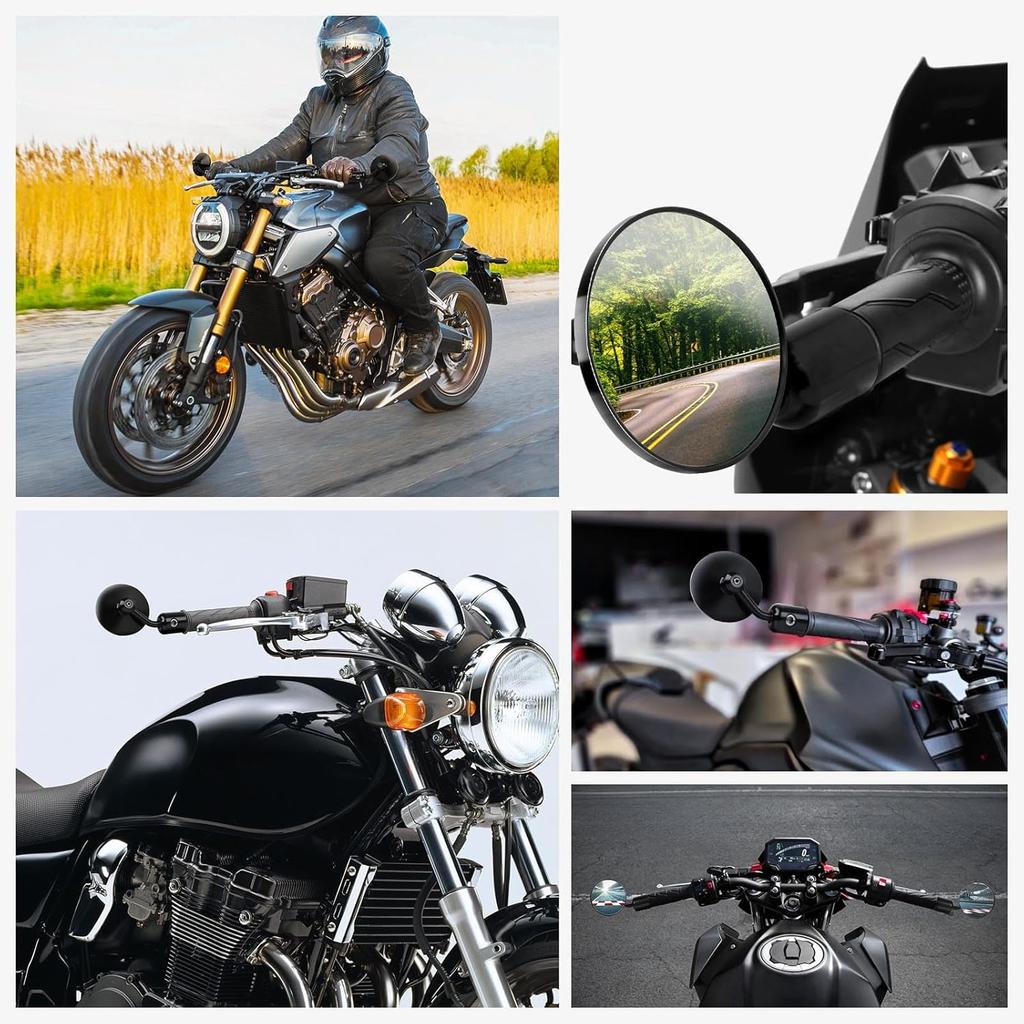 Круглые боковые зеркала мотоцикла 7/8" для руля, совместимые со стритбайками, кафе-рейсерами, спортбайками, чопперами, круизерами, спортбайками FZ8 FZ-07 09
