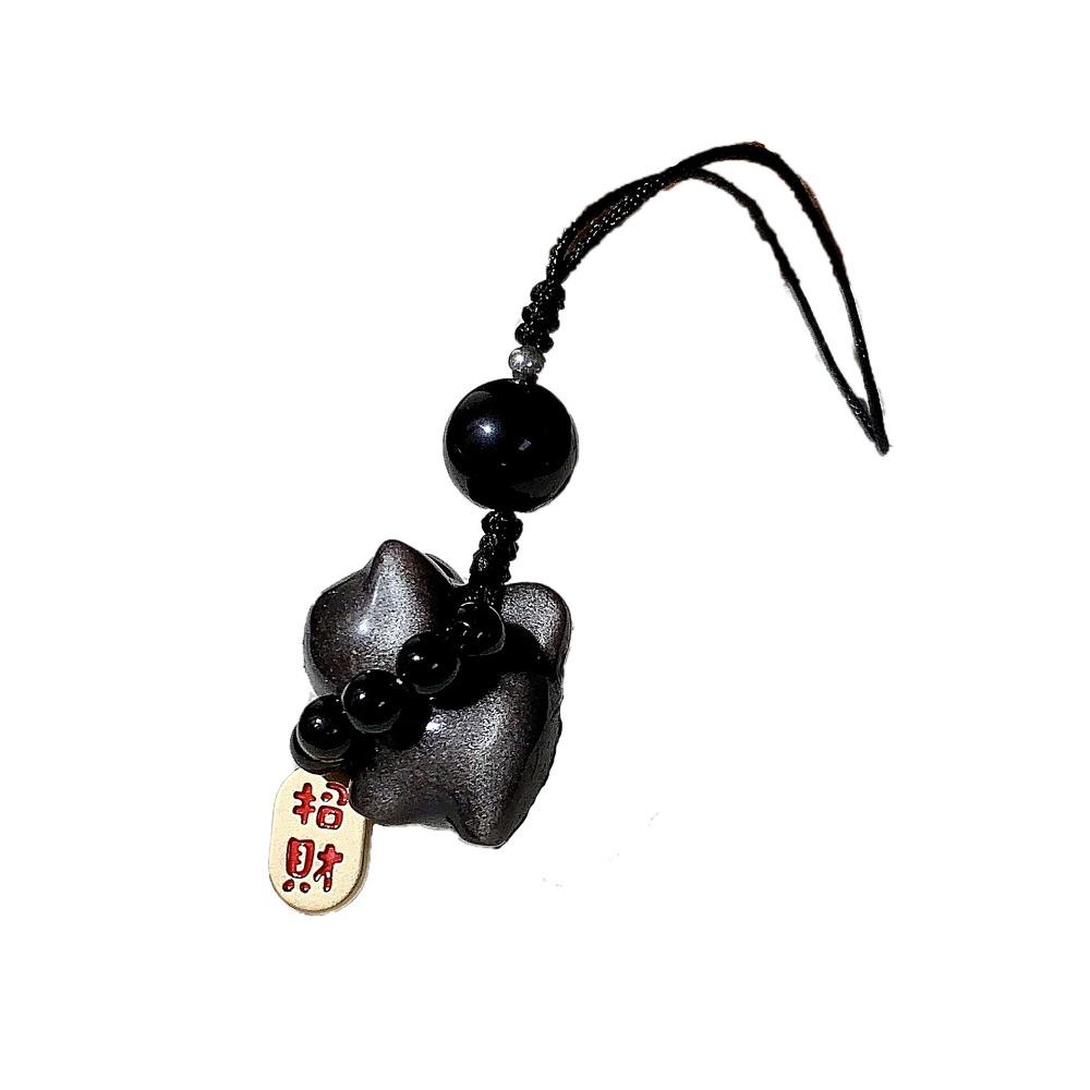 Серебряный обсидиановый кот сумка подвески камень автомобильный брелок милый счастливый кот плетеный кулон веревка маленькие подарки