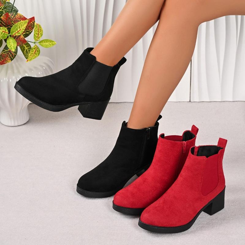 Новая Мода Женские Ботильоны на Блочном Каблуке Осень Новые С Круглым Носком Замшевые На Молнии Сбоку На Платформе Нескользящие Износостойкие Одинарные Ботинки42
