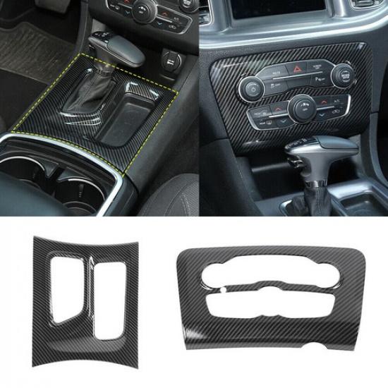 Carbon Fiber Air Conditioner Switch &Gear Shift Cover Trim for Dodge Charger 15+