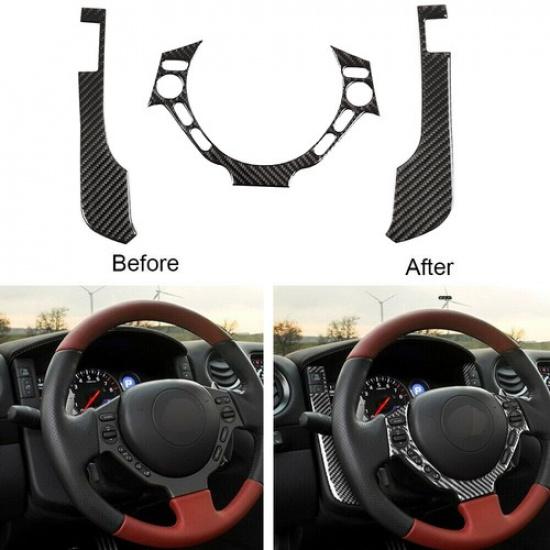 For Nissan GTR R35 Carbon Fiber Speedometer&Steering Wheel Button Cover Trim