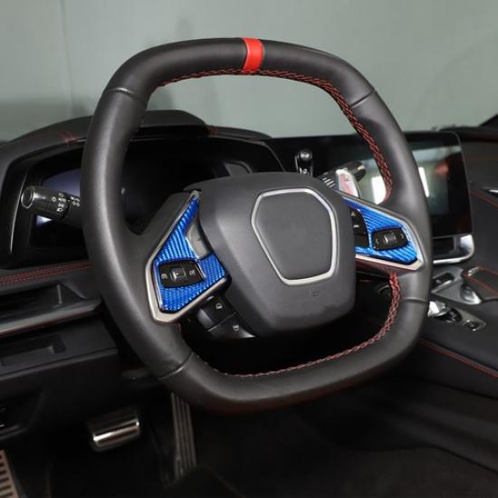 Blue Carbon fiber Steering wheel button sticker For -2025 Corvette C8