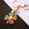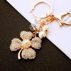 Инкрустированный бриллиантами жемчужный четырехлистный клевер брелок для ключей автомобиля, металлический женский брелок для сумки, подвеска, хрустальная нить, кольцо для ключей