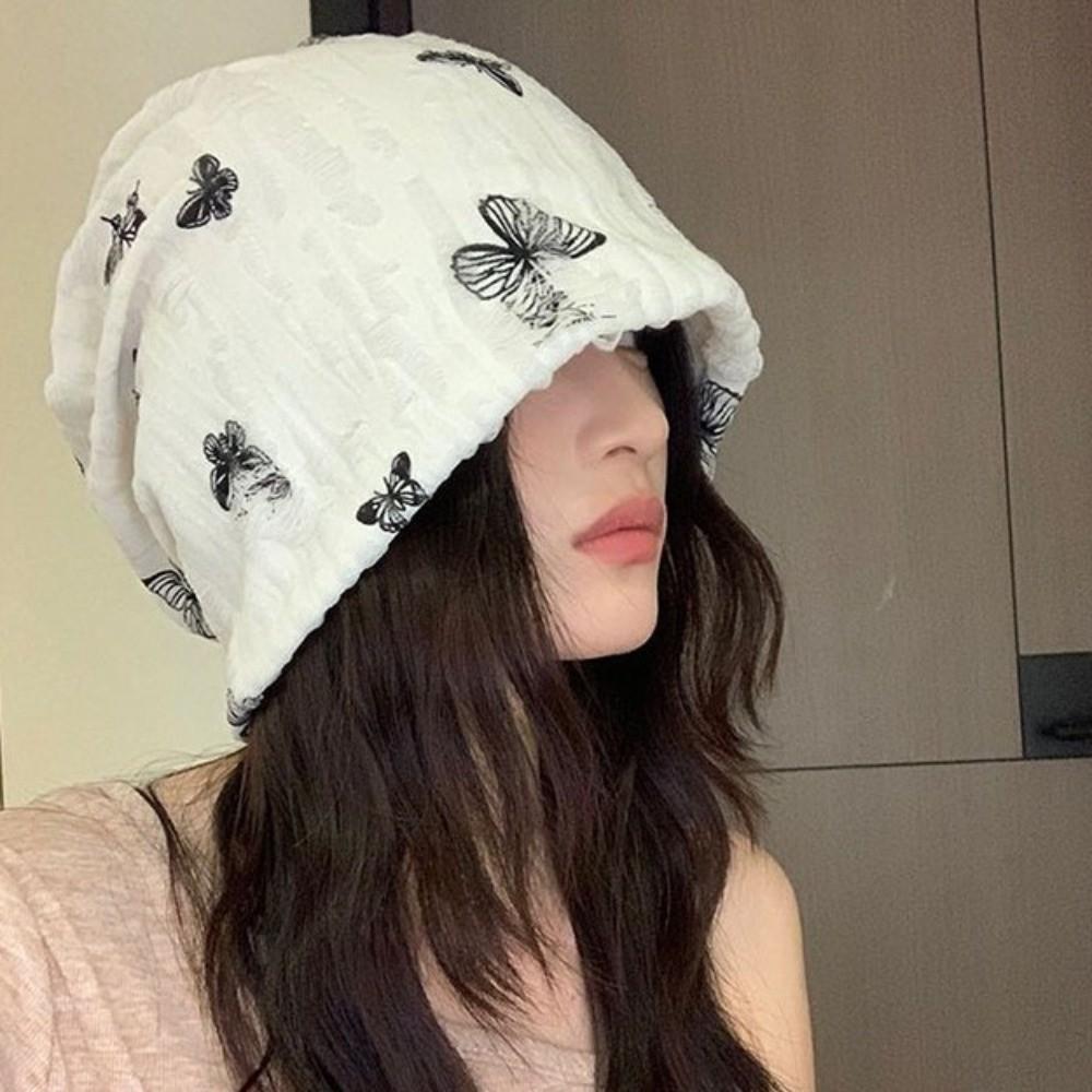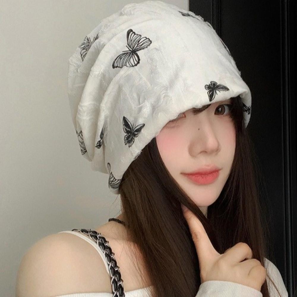 Coldproof Fleece Beanies Thickened Plush Pullover Hat Harajuku Butterfly Print Beanies Female
