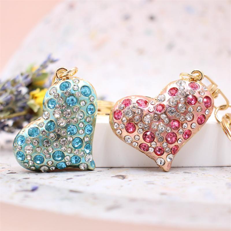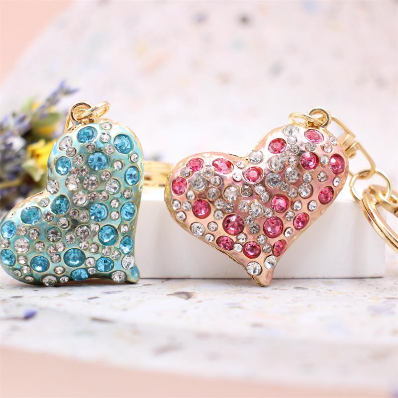 Women Jewelry Charm Crystal Keychain Heart Key Holder Rhinestone Keyring Red Bule Pink Pendant Key Chain Rings