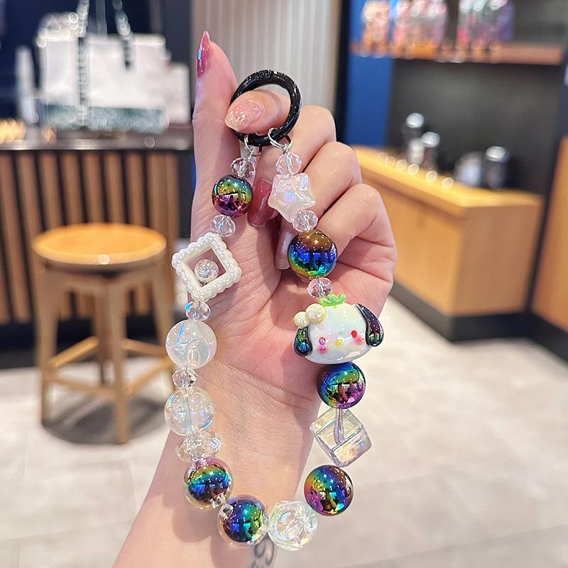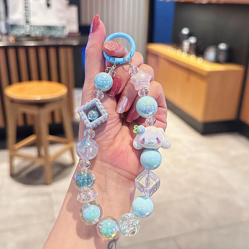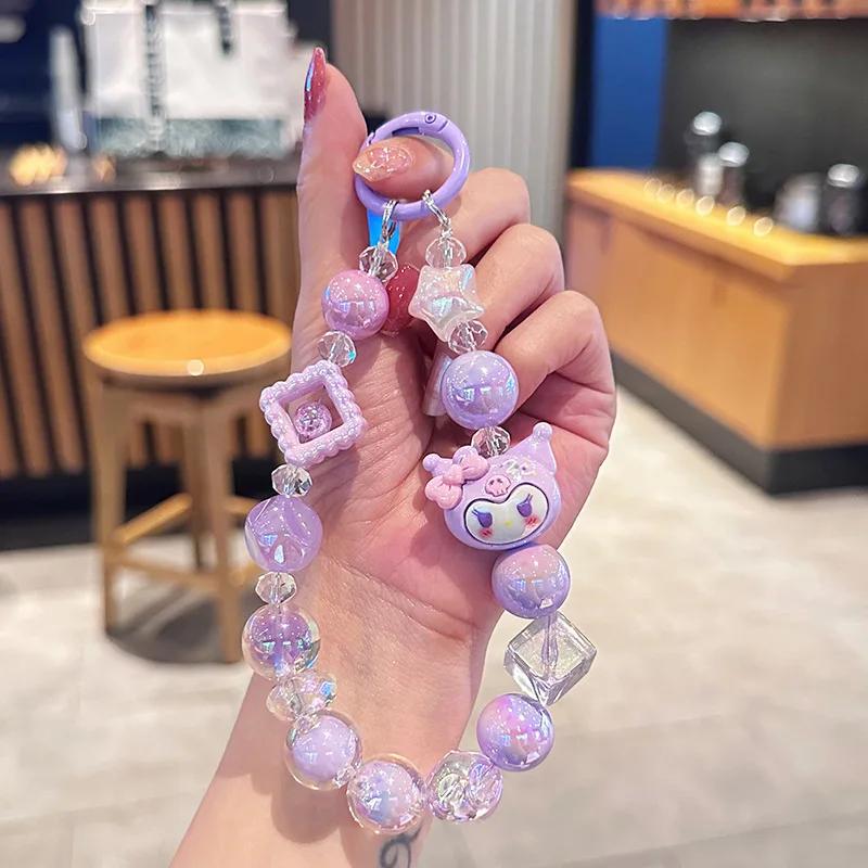 Sanrio Hello Kitty Melody Kuromi Cinnamoroll Цепочка для телефона Подвеска для камеры Нарисованный вручную Бисером Кавайный Браслет Брелок