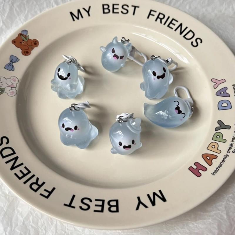 Новый Милый Светящийся Брелок из Смолы с Мультяшным Привидением на Хэллоуин, Веревочное Кольцо для Ключей, Подвеска-Шарм для Сумок, Ключей, Креативные Декоративные Аксессуары