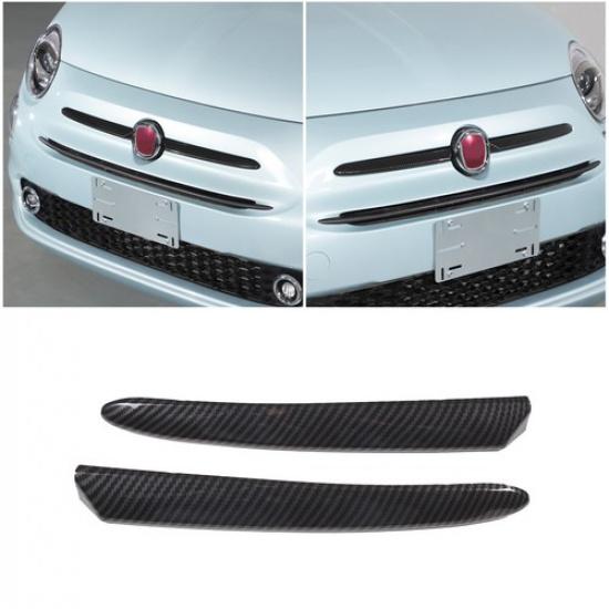 Carbon Fiber ABS Front Bumper Upper Grill Moulding Trim For Fiat 500 2016-2024