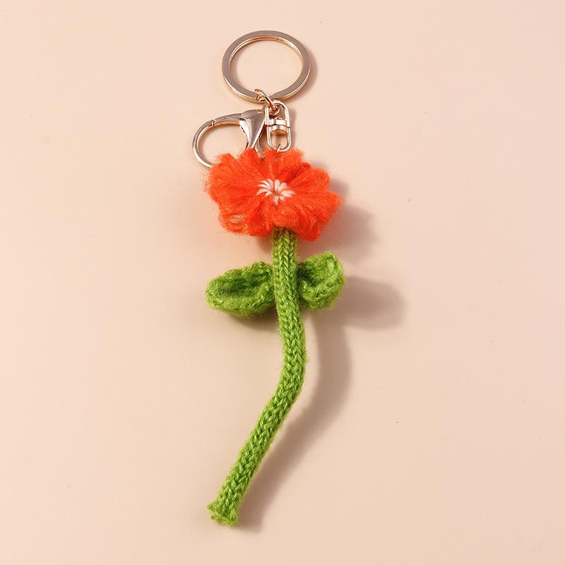 Aihua Hot New Handmade Knitted Keychain Keyring For Women Girl Cute Crocheted Flower Pendants Car Key Ring Handbag Charms Gifts