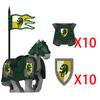 Medieval Castle Green Dragon Knight Building Blocks Figure Accessory Shield Vest Warhorse Cape Orc Flag Mount Wolf Toy Gift D123