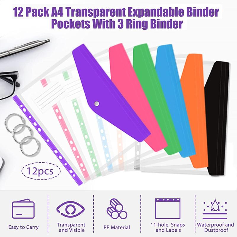 1. Премиум Материал: Полиэтиленовый конверт изготовлен из высококачественного водонепроницаемого и пыленепроницаемого полипропиленового материала, который может защитить ваши документы от воды, влаги и пыли. Папки Binder обладают хорошей гибкостью и долговечностью, чтобы ваши важные файлы хранились дольше. Высокопрозрачный материал позволяет легко идентифицировать внешние файлы, экономя время поиска.