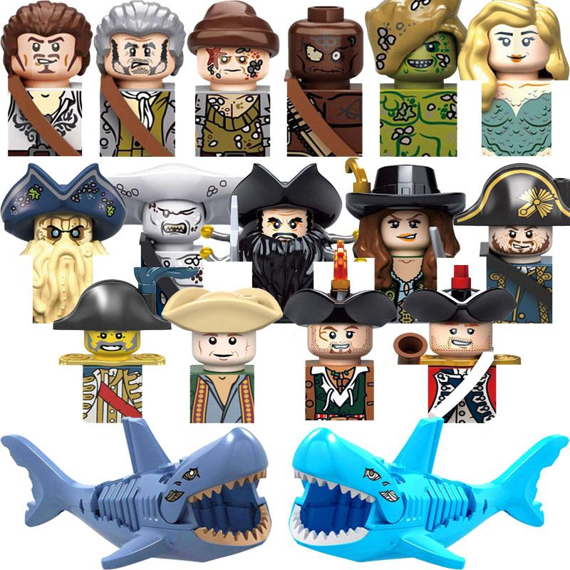 Classical Movie Pirates Of The Caribbean Ghost Shark Jack Sparrow Jones Model Building Blocks Enlighten Bricks Toys For Children