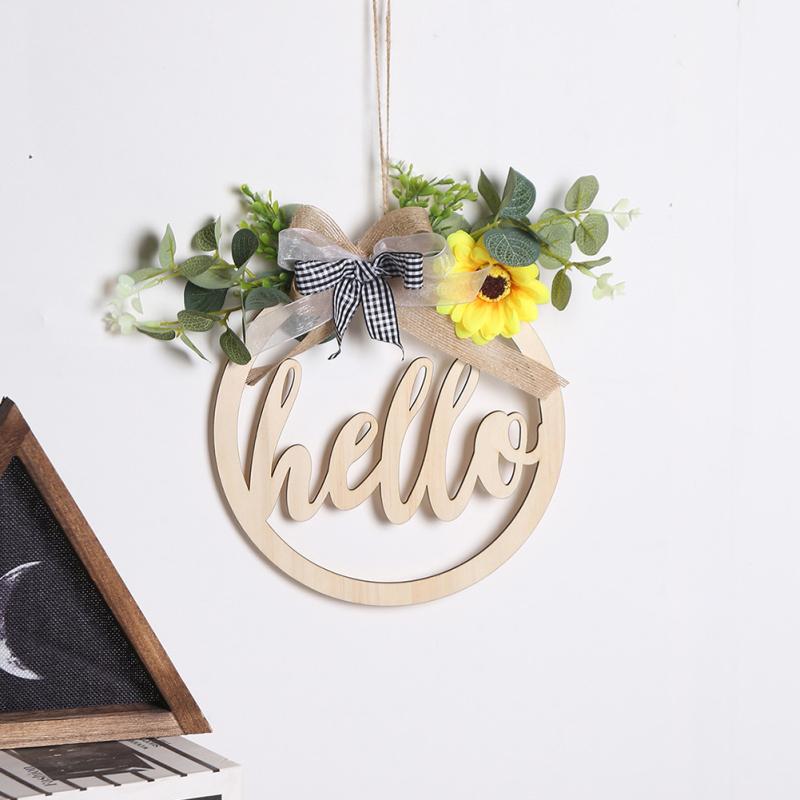 Круглое уличное подвесное украшение деревянный кулон знак "Добро пожаловать/привет" набор венков с бантом для дома